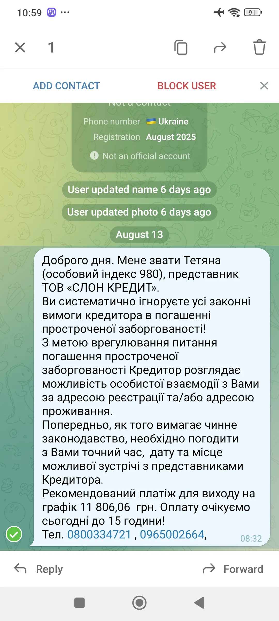 Я за границей, здесь звонки не доходятКредит касса самые проблемные со временем продаст в «Финтраст Украина», а те подадут в суд, у меня отсудили все с процентами услуги, придумали своему юристу на юридические услуги почти 20 тысяч. Но лучше не платить, потом закрыть за тело, или полтела, подающие в суд исполнительное производство будет, если оф доходов нет и ничего за вами не считается то будете платить, сколько будете считать нужным, а если официальный доход, договоритесь с исполнителем на нормальную оплату, он заинтересован чтобы вы оплатили чем нет. Да и при аресте счетов он должен вам разблокировать 16 500 если не ошибаюсь, но скажу одно с исполнителями легче идти на контакт чем с коллекторами, да и смените мобильный номер, и будет вам тишина.