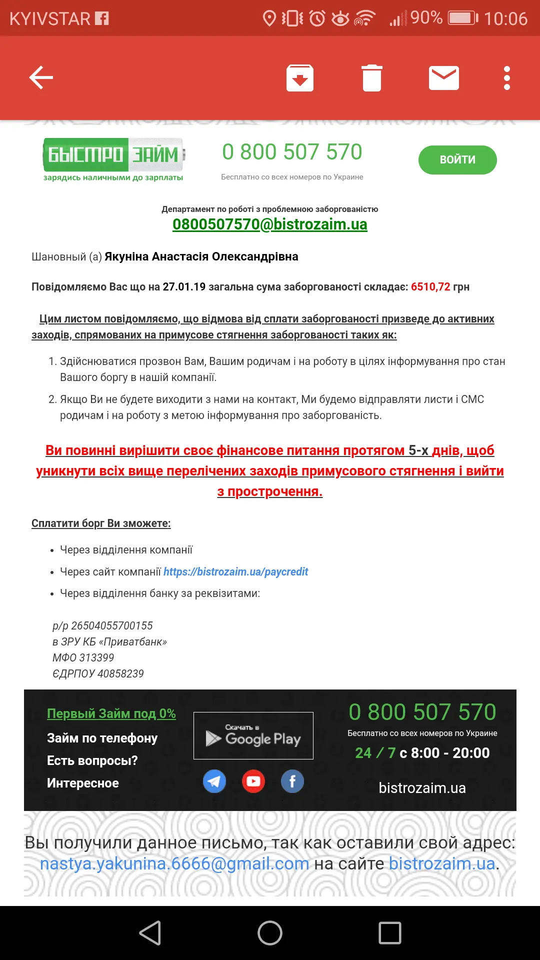 4 ый день просрочки а вот что пишут,трубку не беру,нашли номер бабушки,ахаха,а она их послаоа в задницу))))