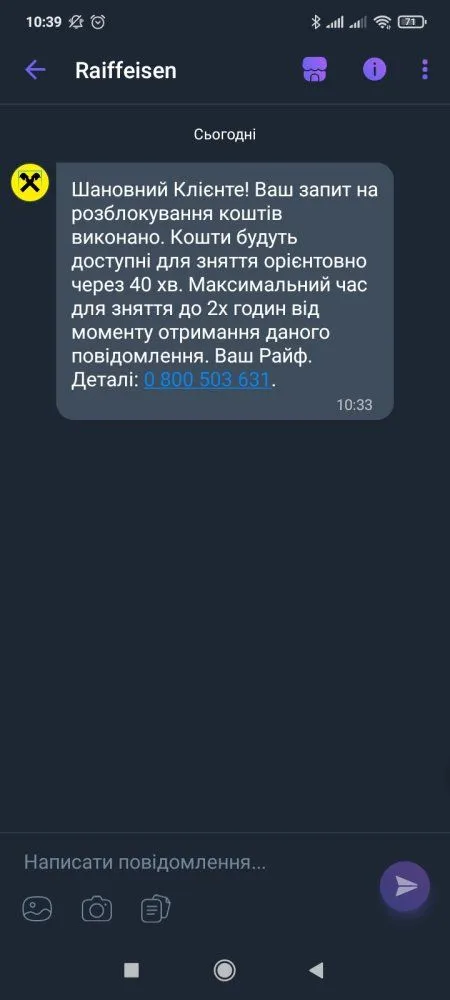 Так Аваль мені дає змогу зняти кошти, Тільки все і відразу, до 18:00 я повинна їх зняти, потім знову арешт, і так кожного місяця, я їм пишу коли мені потрібно зняти кошти вони знімають арешт, я біжу бігом до 18:00 знімати