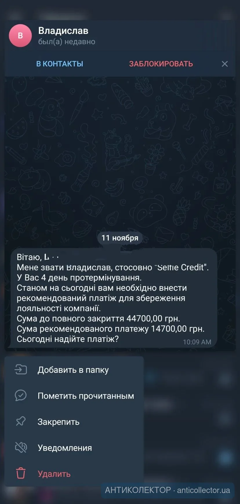 Доброго вечора форумчани,давно не виходив на звязок...трошки роботи прибавилось,влаштувався на ще одну)Тепеп працюю в графіку 2дні в одному магазині/і 2 ще в іншому,вивчав новий для себе товар і вникав в суть,тому не до контор було і розповідей про погане чи хороше,почали телефонувати рідним але добре що я завчасно встановив фільтр звінків)credit 7 випадково дозвонилися до мене через вайбер(очікував дзвінка з роботи,а попав на коллектора)....Дуже цікаво з ними спілкуватись🤣🤣🤣,кажуть що заборгованість і проблеми з кредитом,потрібно терміново вносити саме сьогодні платіж-моя ж відповідь,що на данний момент не маю коштів,як з'являться то одразу закрию а у відповідь повтор тексту по пару кіл,не витримав і збив трубку,хай тепер далі дзвонять як хочуть....Загалом не переживаю ні за що(створив для себе умови,щоб не було коли за всяку нісенітницю переживати)..заробляю по трошки і чекаю судів..
