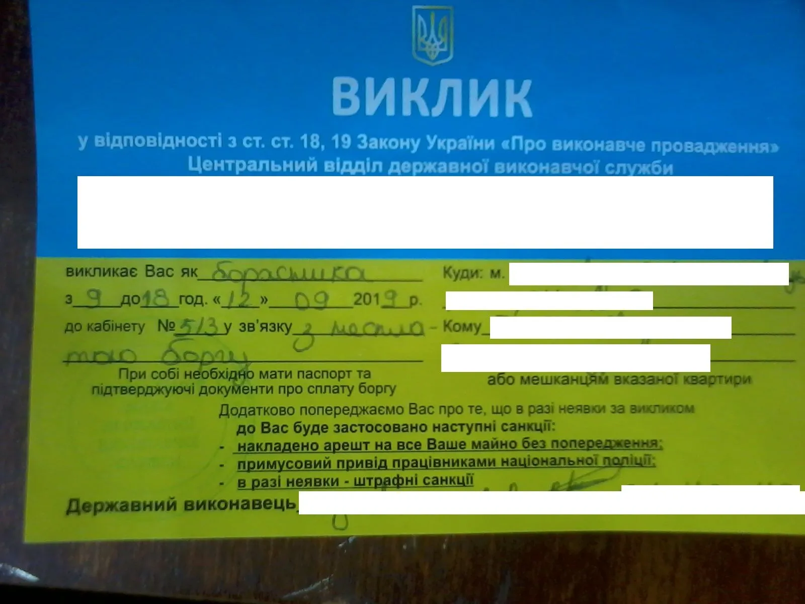 всем кто уверено вещает, что исполнитель не может придти, описать, забрать и тд, советую все таки почитать закон об исполнительном производстве)))