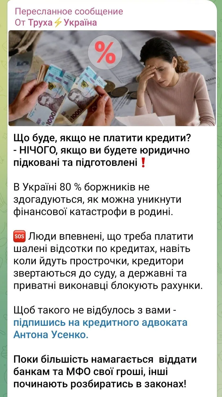 Щоб такого не відбулось з вами - підпишись на кредитного адвоката Антона Усенко.