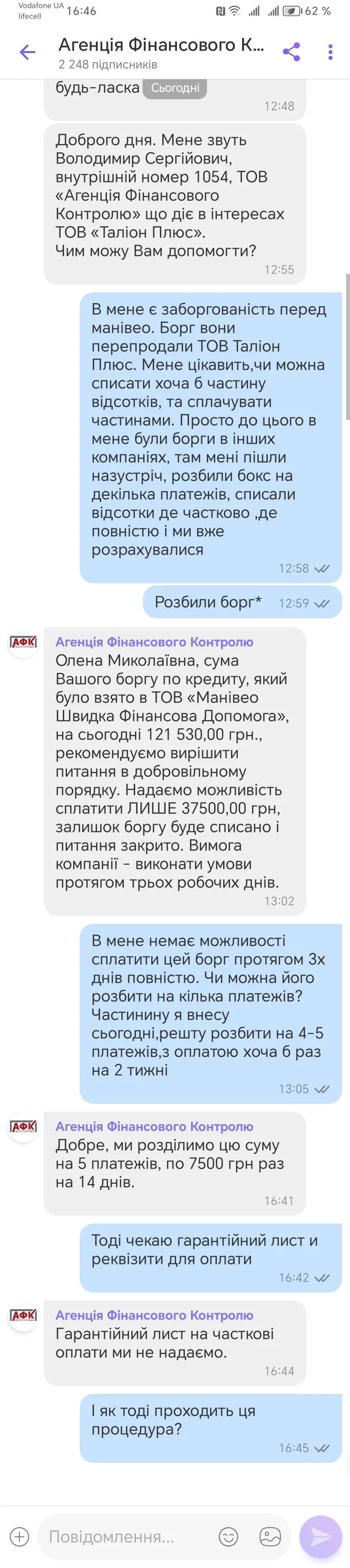 Добрый день)) Ребятки, подскажите,может у кого была похожая ситуация. Манивео( тело 25000,просрочка больше года) продали Талиону. Те постоянно только полную оплату хотели. Сегодня согласились на 1.5 тела,даже разбить на части,но никаких гарантийных писем не дают. Это норм,или нет? Просто до этого все,с кем договаривалась за тело( с некоторыми тоже частями) все давали гарантии,провода там ещё без коллекторов было