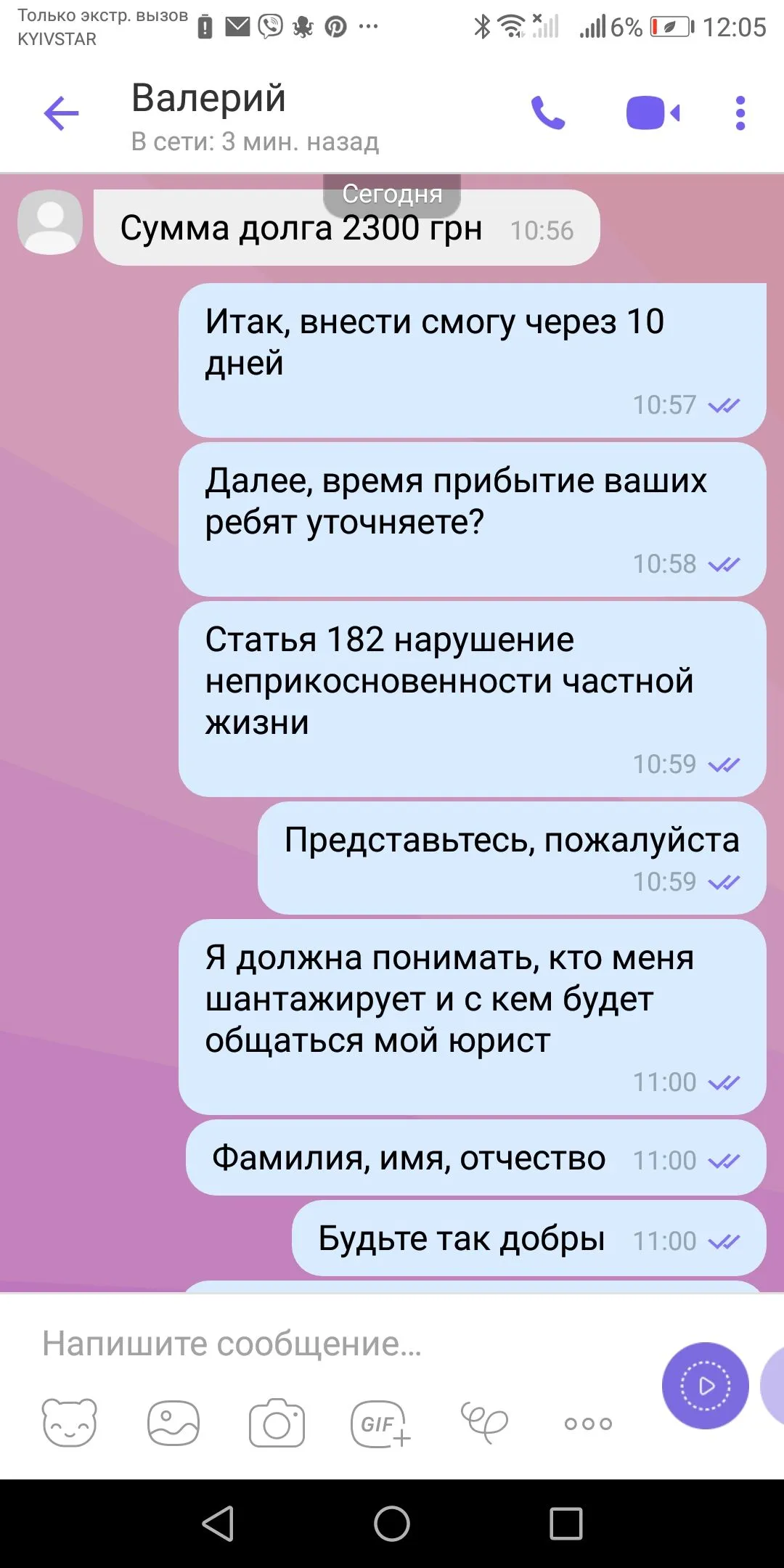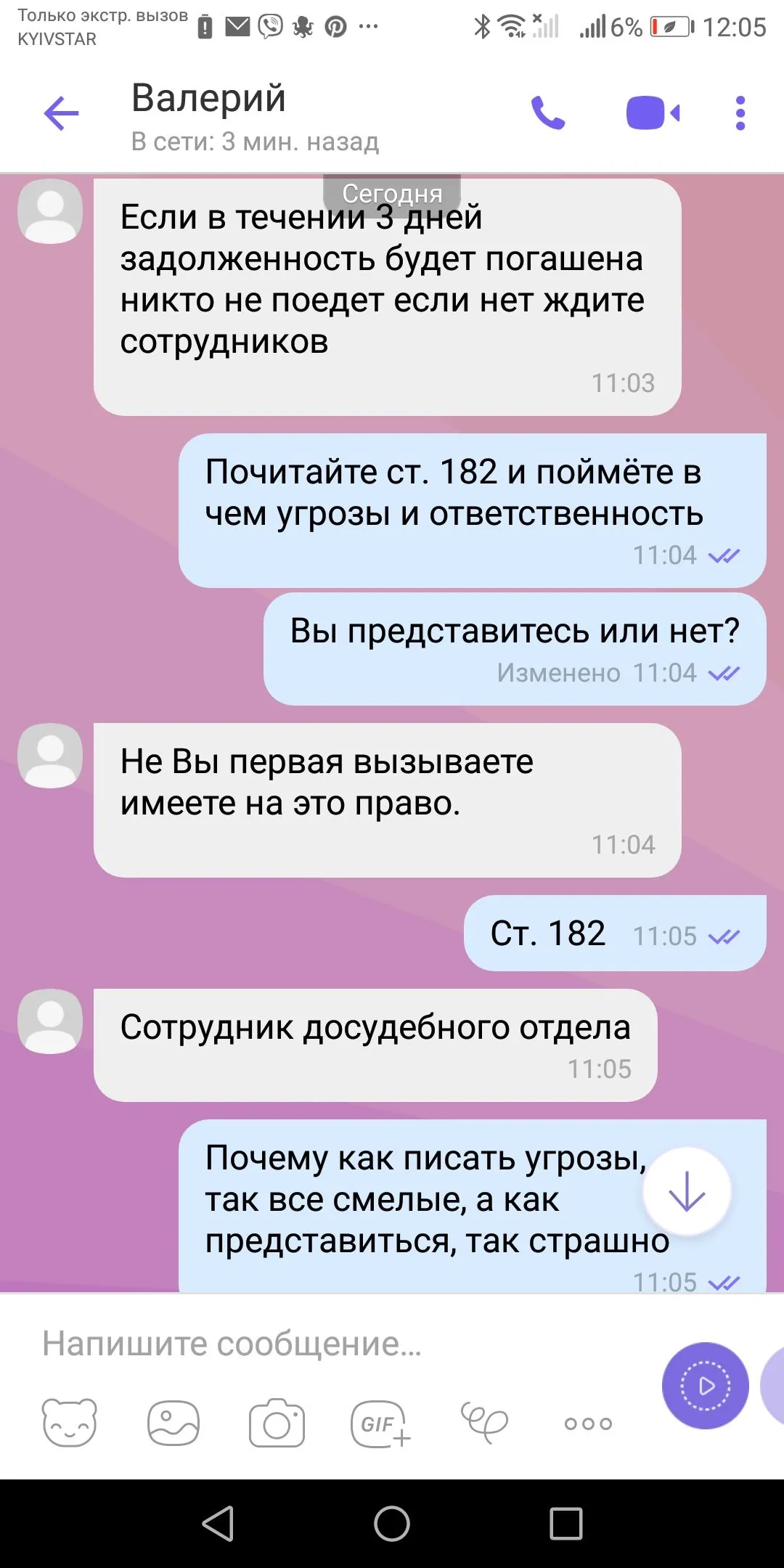 Приехать они не приедут. Про соц сети угрозы очень реальные. Эти готовы на все. Более конченых как они я есче не встречал. Пишите все номера, разговоры, делайте скрины всех сообщений, заведите отдельный блокнот на этих ypoдoв. Записывайте все имена и фамилии звонилок. Собирайте доказательства для передачи в полицию, суд, НБУ.Мне тоже вроде она звонила. А потом передали дело некому Вадиму Юрьевичу. А то обещал вчера приехать и расклеить мои фотографии и разослать по соц сетям. Жду.