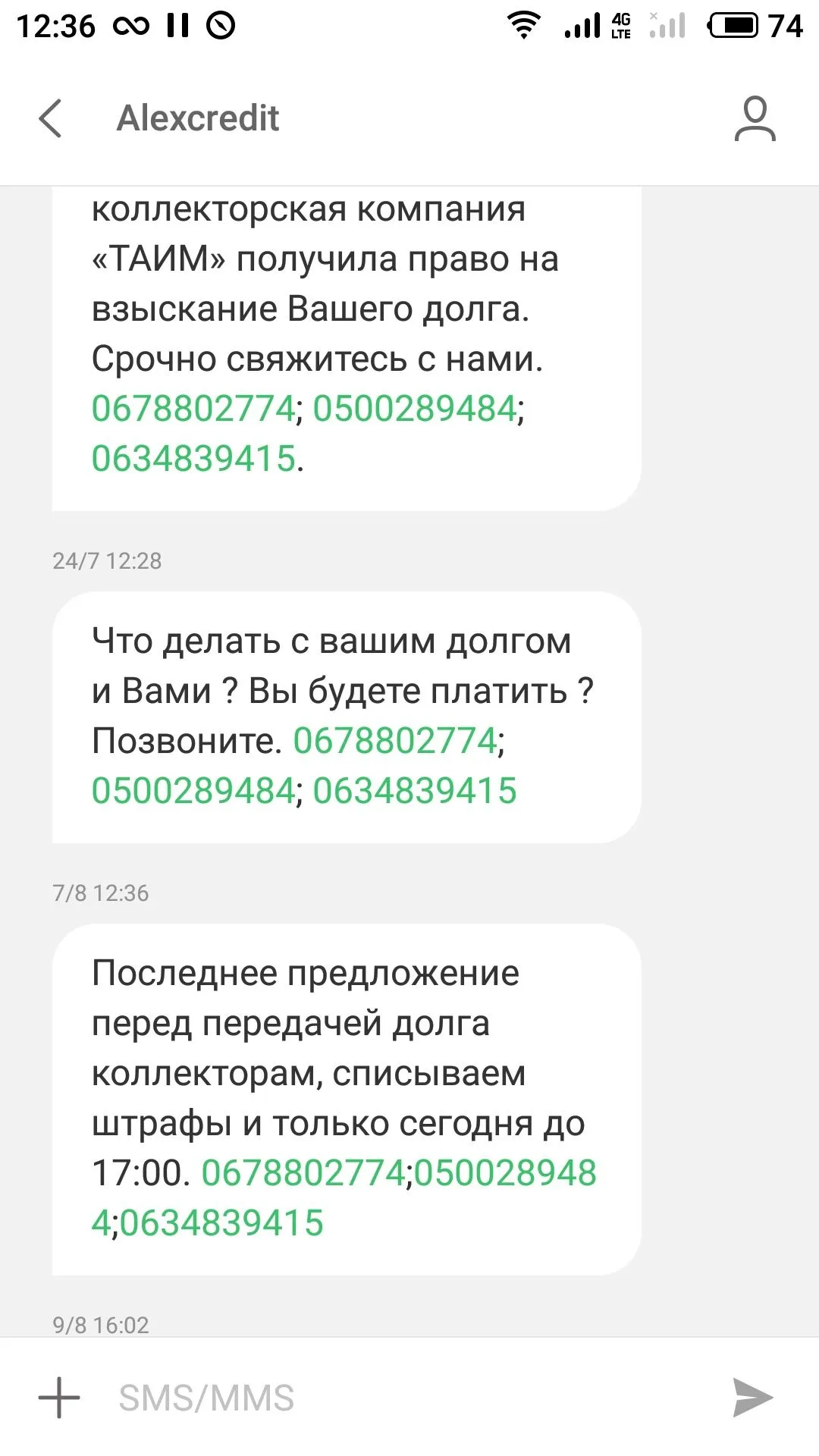 У меня просрочка 4 месяца... тоже получила...тело 6000... пролонгациями все закрыла давно. А после угроз пусть идут лесом.