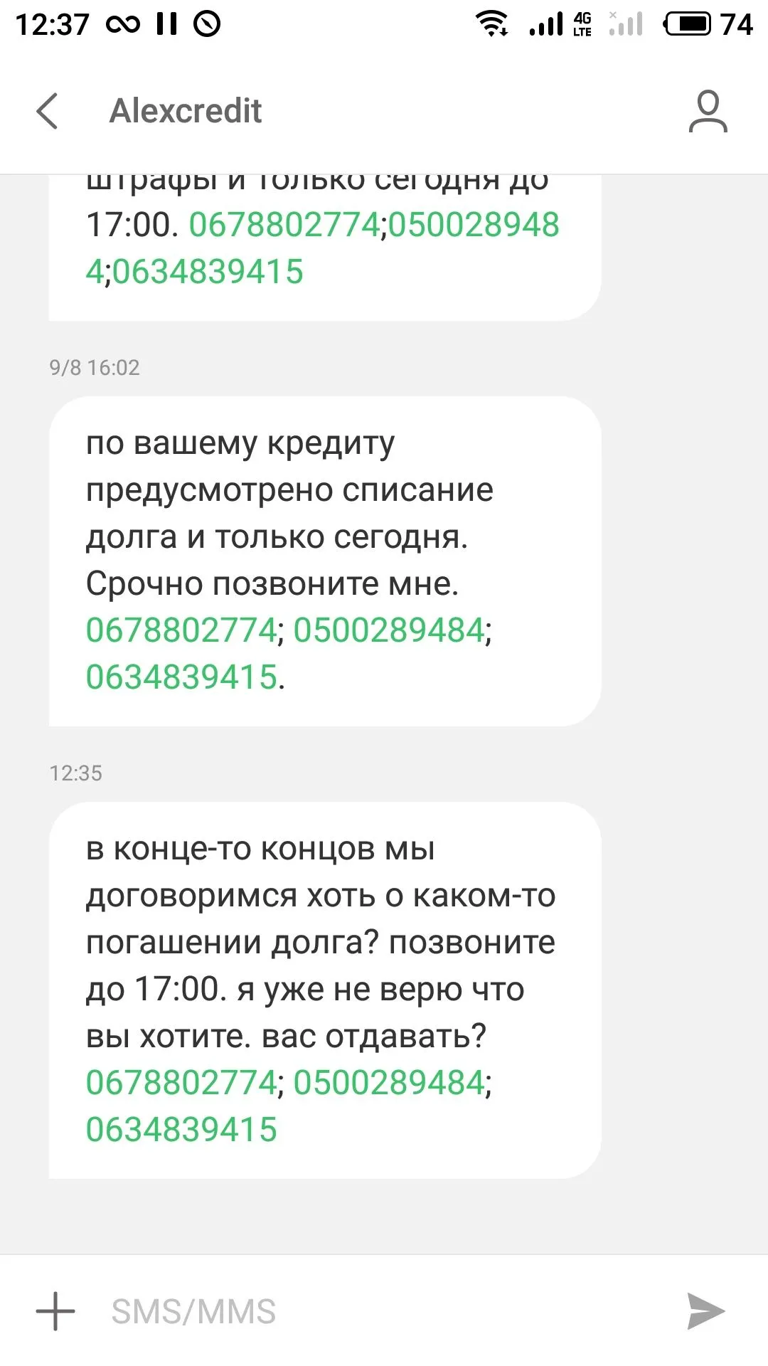 Из смс :