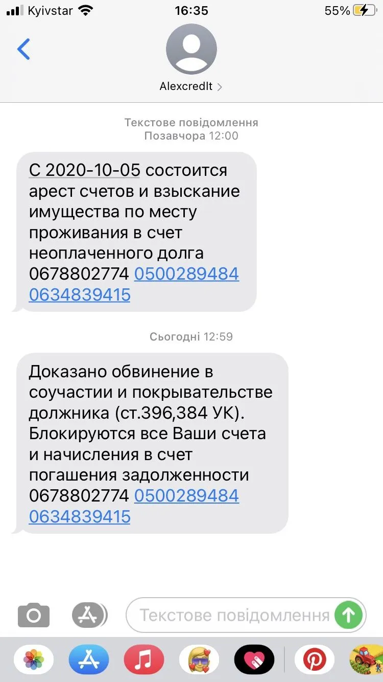 Шо це за ******, форумчани, Алекс шеле смс, що блокує рахунки матері з 05.10, не мені, а матері) у мене тіло 2350, і прострочка менше місяця)?при чому тут моя мама??