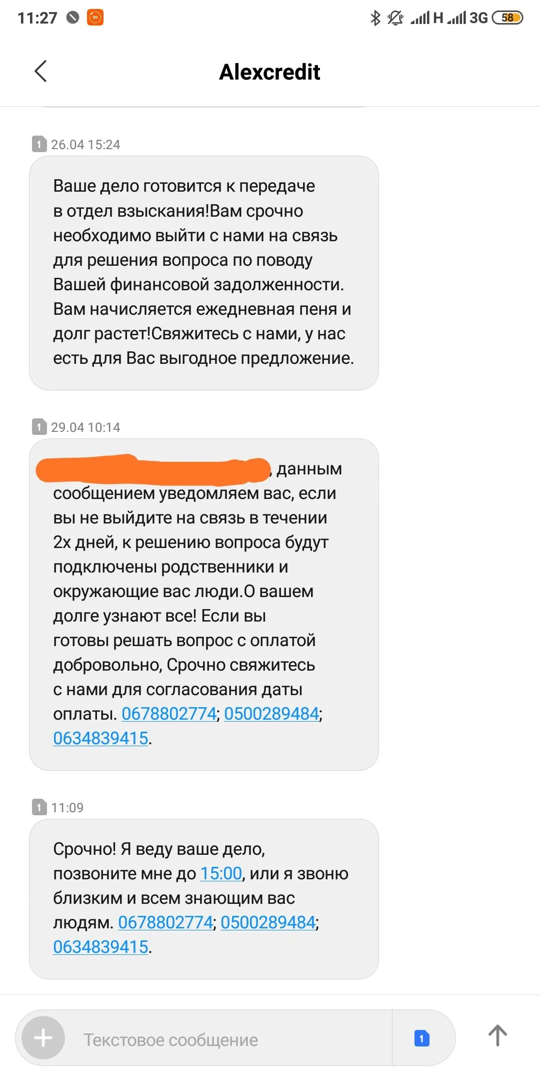 Мне такое же пришло...Срочно! Я веду ваше дело, позвоните мне до 15:00, или я звоню близким и всем знающим вас людям. 0678802774; 0500289484; 0634839415. Прислали тільки-но ,а я думав забули про мене