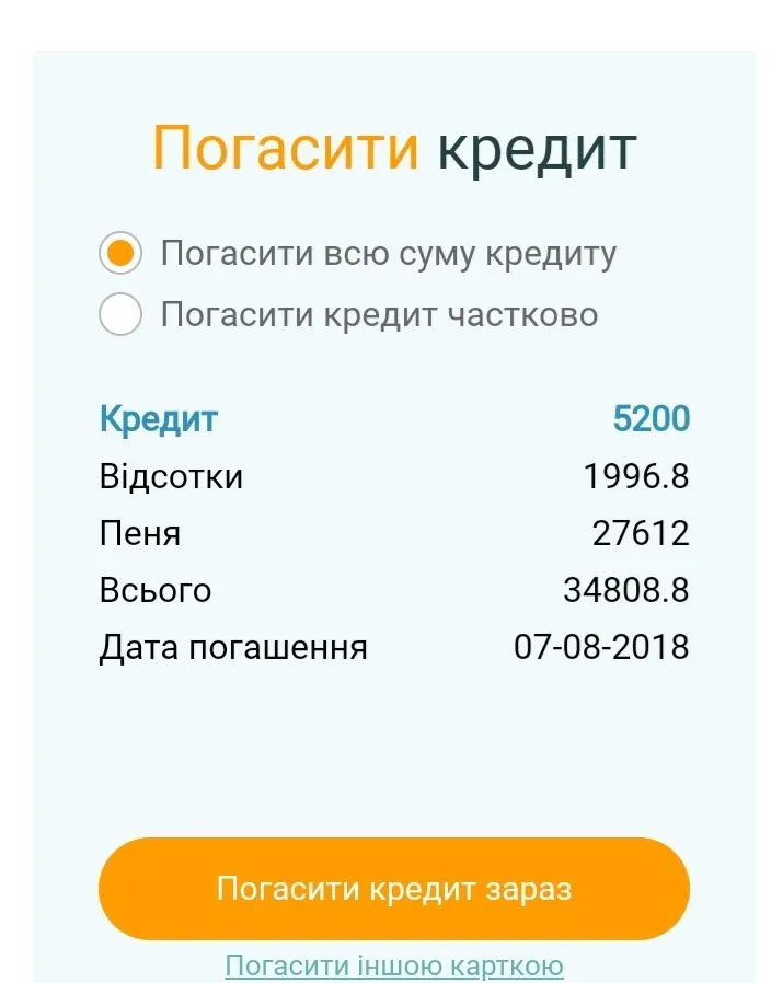 У меня есть, тело 9850, хотят 21000, на их звонки не отвечаю просрочка где-то месяц, в суд не подают, только звонят и пишут пугалки, всё на большее они не пойдут! У них нет гарантий что они приедут на адрес, а им не денег дадут а п*здюлей!