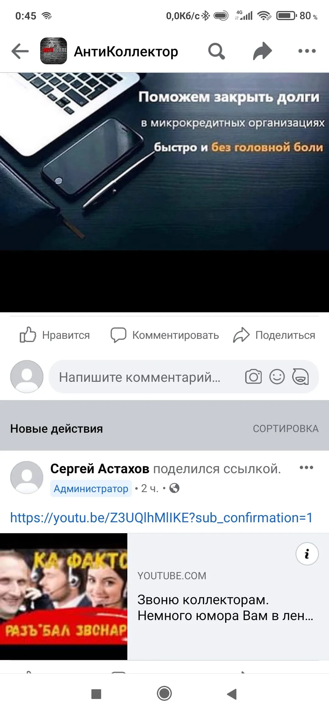 Прилетела реклама в Фейсбуке...мол,Антиколлектор быстро порешает с долгами. И Ваше видео.