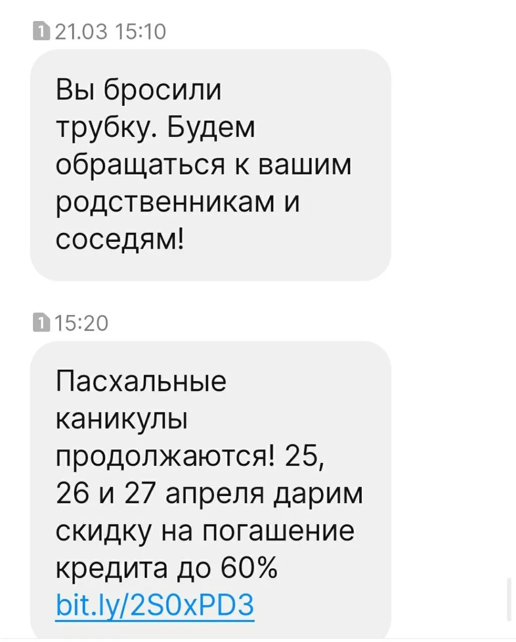 Вот блин я поражаюсь человеческому уму,если люди просидели полтора месяца на карантине,и ещё блин май точно будут сидеть,откуда у них деньги,да за кредиты,если б умные были раньше осени нехрен вообще заикаться,и то если будут лишние деньги.Люди уже на таком моральном истощении,что просто жoпa,обозленные.Наш городок возле Киева вообще стал популярным в новостях из за вируса,хрен теперь послабят меры.А они блд письма шлют,что штрафы будут.Да усритесь вы шакалы своими штрафами и песнями.Реально уже достали.Людям кушать не чего,а им штрафы и санкции.И потом когда блин ореш на их при звонке,говорят ты не вменяемый.Дорогие форумчане,как у вас с оповещением по окончании карантина,я вот получила первую ласточку?,