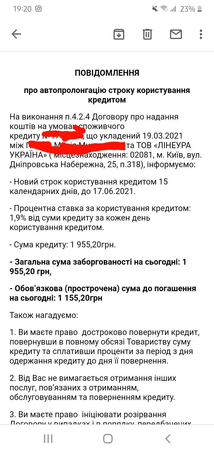 Товариством, строк користування кредитом продовжено на 15 календарних днів з 17.05.2021.