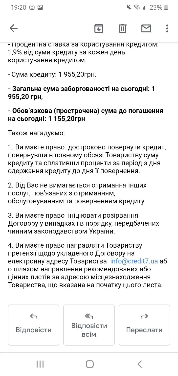 Процентна ставка за користування кредитом: 1,9% від суми кредиту за кожен день користування кредитом.