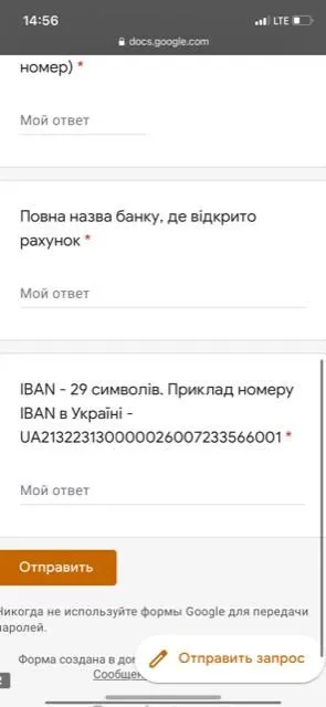 Попросили реквизиты ИБАН для перевода денег.