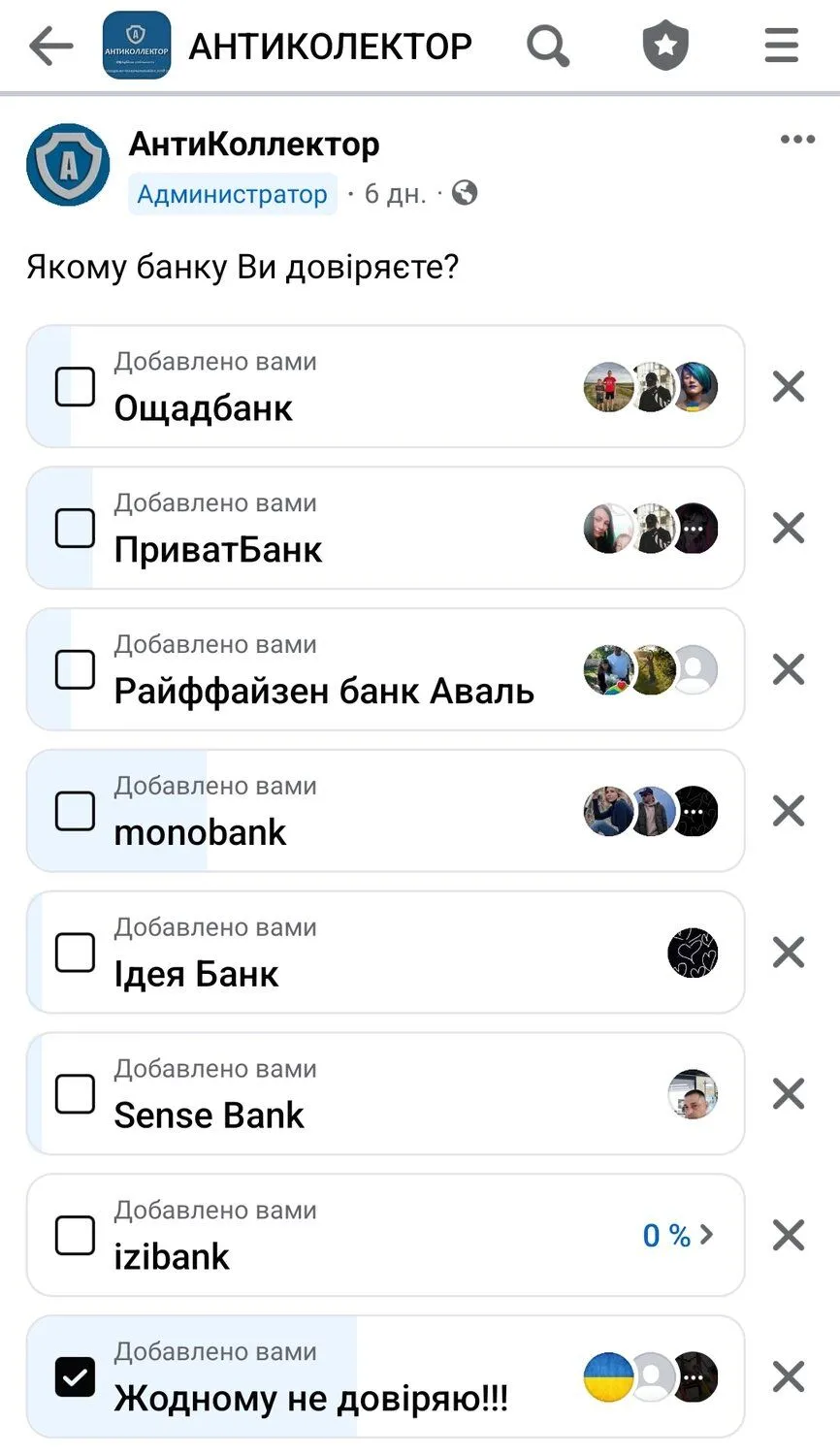 Нещодавно проводили опитування у нашій офіційній спільноті в Фейсбук, якому банку ви довіряєте.
