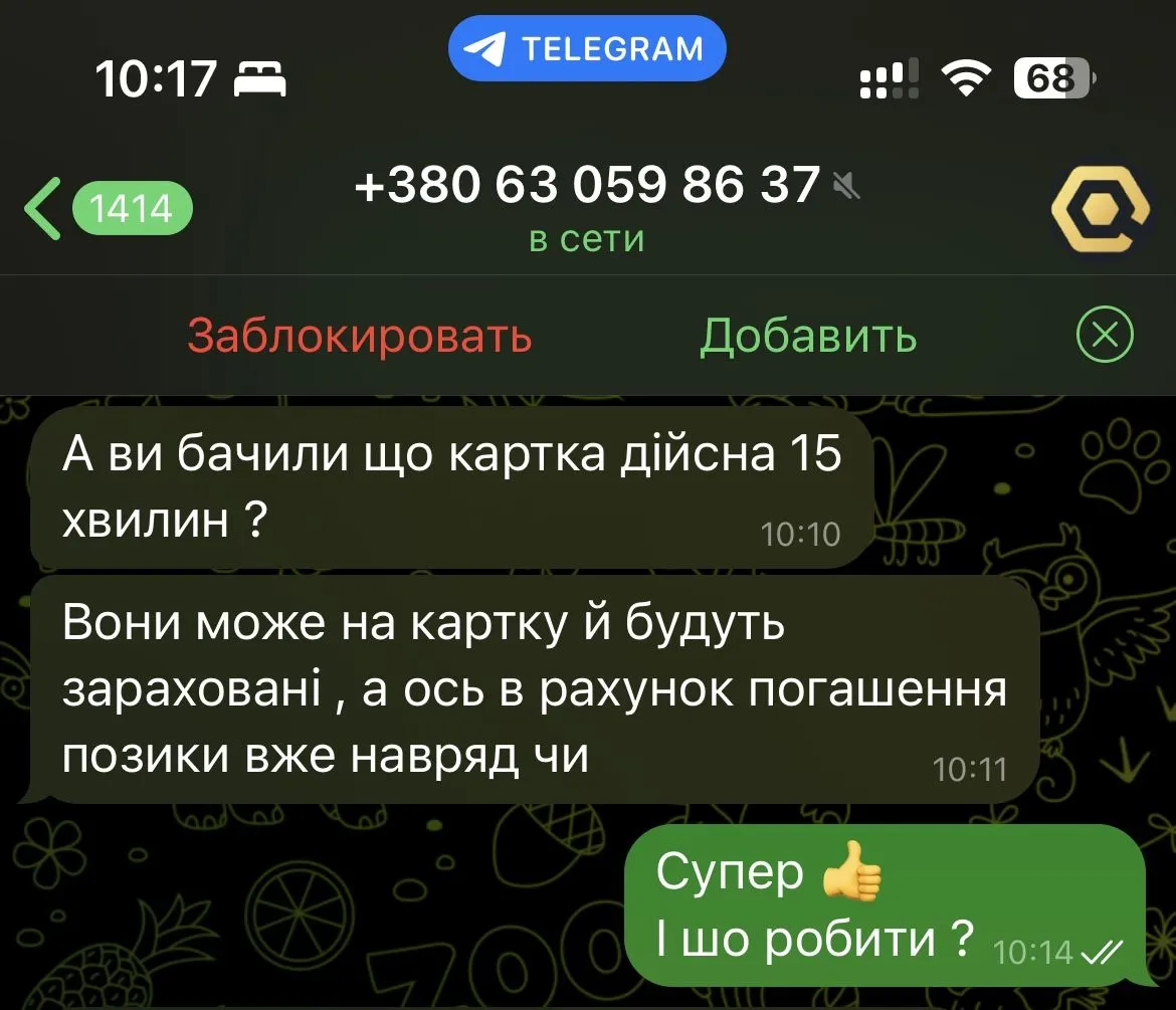 Ну вы ж не возьмёте свой "договор", чек об оплате, скрин переписки + скрин, где они вам давали номер карты и т.д, и не напишите заявление хотя б в какой-то правоохранительный орган, хотя б в электронке. Это ж сложно. Просто заплатите им второй раз, порадуйте их, они себе мороженко купят. А бороться с ними я сам буду, это ж только мне надо.Ну вони не бачуть платеж ,дали час до 12:00 оплатити ,або повинають роботу з оточенням (а до цього всю телефону книгу передзвонили )