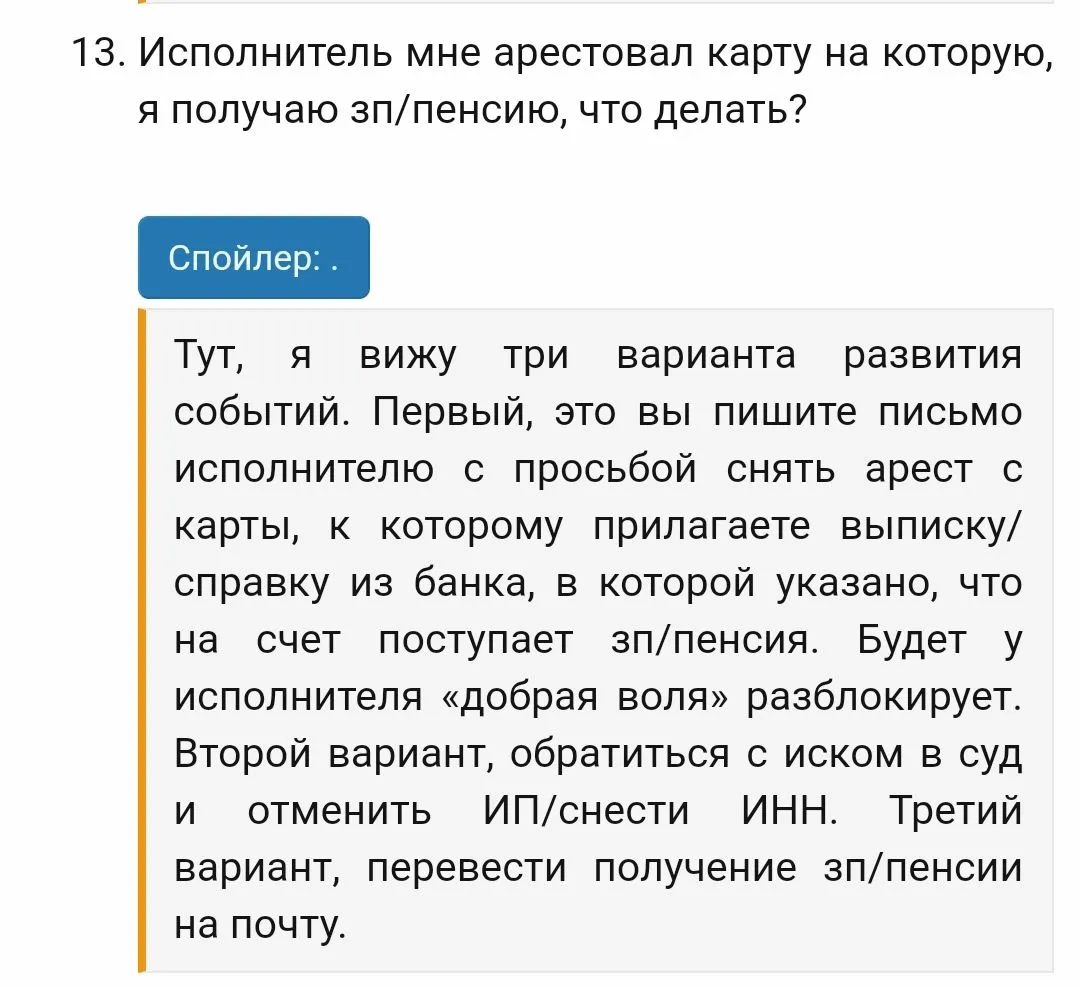 Пример: частный исполнитель блокирует все счета должника, в том числе и те на которые регулярно поступают денежные средства, при этом ни какого списания, тупо блокировка счетов. Сумма долга, к примеру 30к на счета в месяц, допустим поступает 15к. При этом должник готов оплачивать долг и сумма по ИП его полностью устраивает.