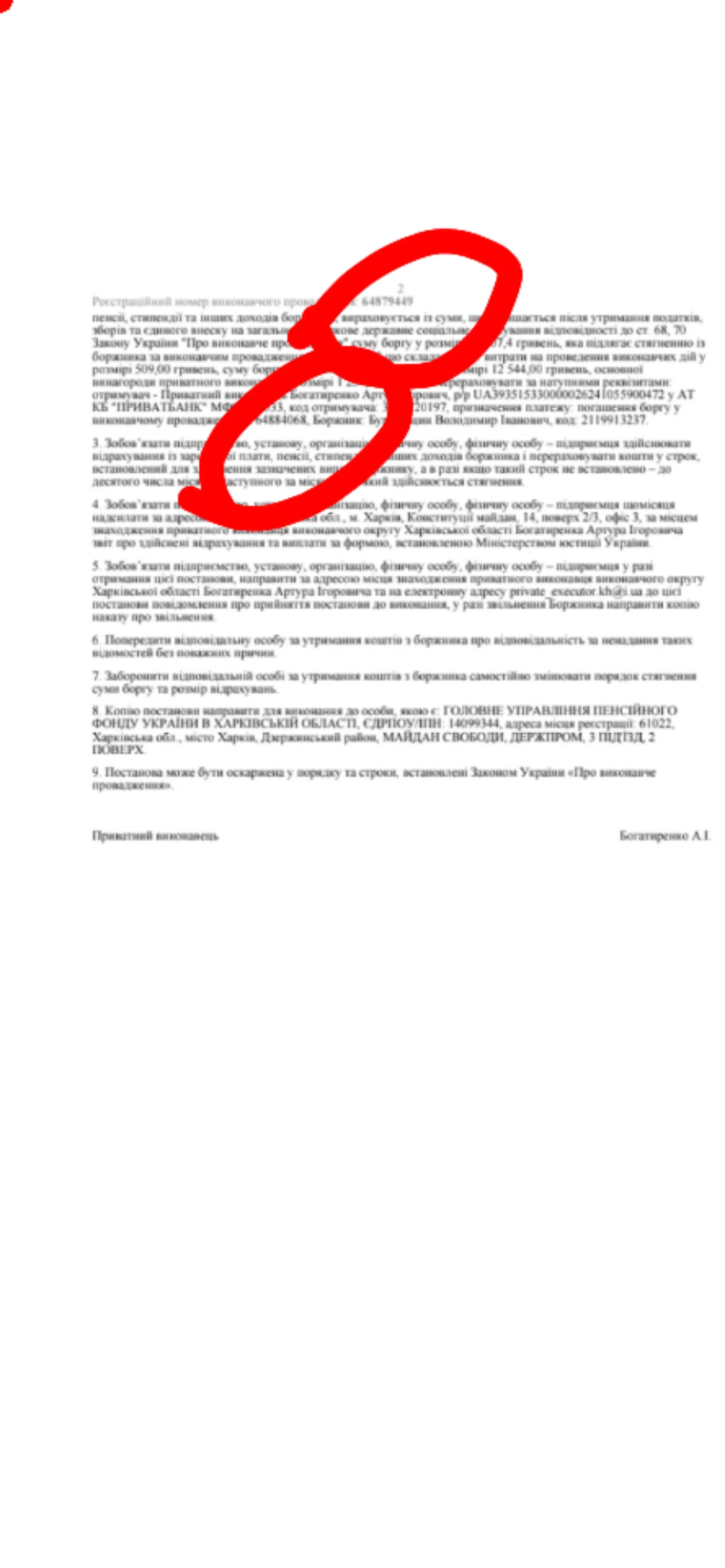 Подскажите, что это за прикол? Мало того что Богатыренко начал снимать 20% с пенсии инвалидности с детства, что по закону нельзя (я понимаю что им законы не писаны), так ещё и эти 20% идут вообще по другому ИП, смотрите скрин, должник указан вообще не я, и номер ИП не мой, но снимают с моей пенсии