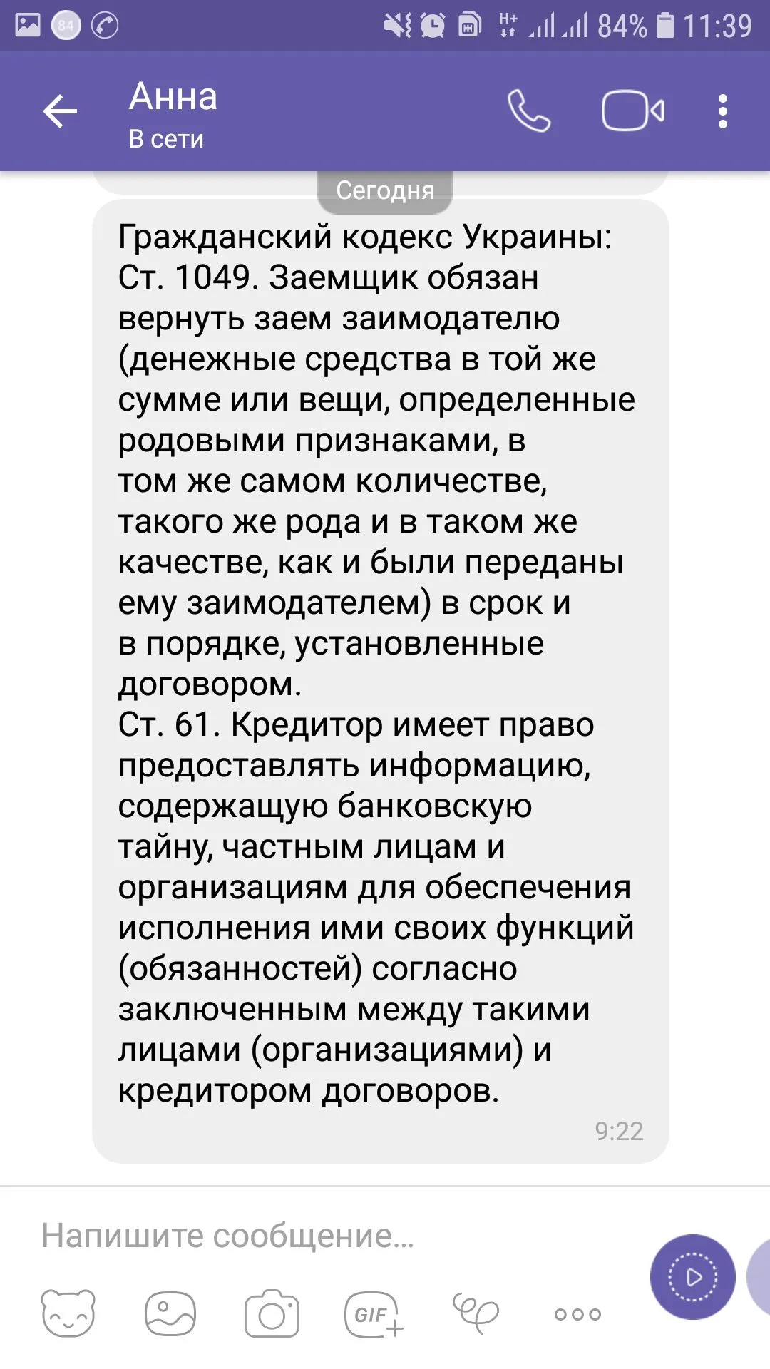 ВЫ меня простите наверно достла. Я как писала консультировалась с юристами и не одним по поводу МФО. Самое сложное доказать что телефоны по которым звонят принадлежат именно им, но также звонила в частный сыск и уточняла можно ли собрать информацию о человеке если есть (телефон/ IP и имя в соцсети и собрать информацию о принадлежности данной личности к данной компании ) ответили можно. Нужно объединять усилия собирать информацию и в суд иски о моральном ущербе, а до этого заводить уголовные дела на их действия. Я понимаю долги надо отдавать, но на мои предложения подписать доп согл. и установить сумму нормальную к погашению и графика погашения без начисления каких либо процентов в дальнейшем и штрафов всегда получала ответ нет причины разные. И вопрос если где то выигранное дело в суде заемщиком или лицом не бравшим кредит о моральном ущербе на территории Украина? Сбросьте ссылку плиз.