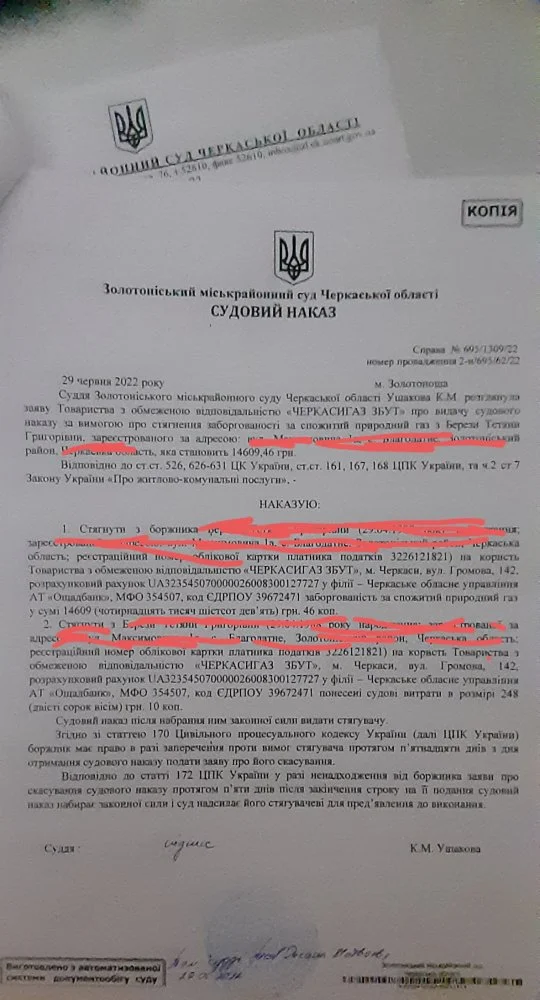248грн судовий збір. А якщо я напишу заяву, то Черкасигаз знову зможуть подати на суд?