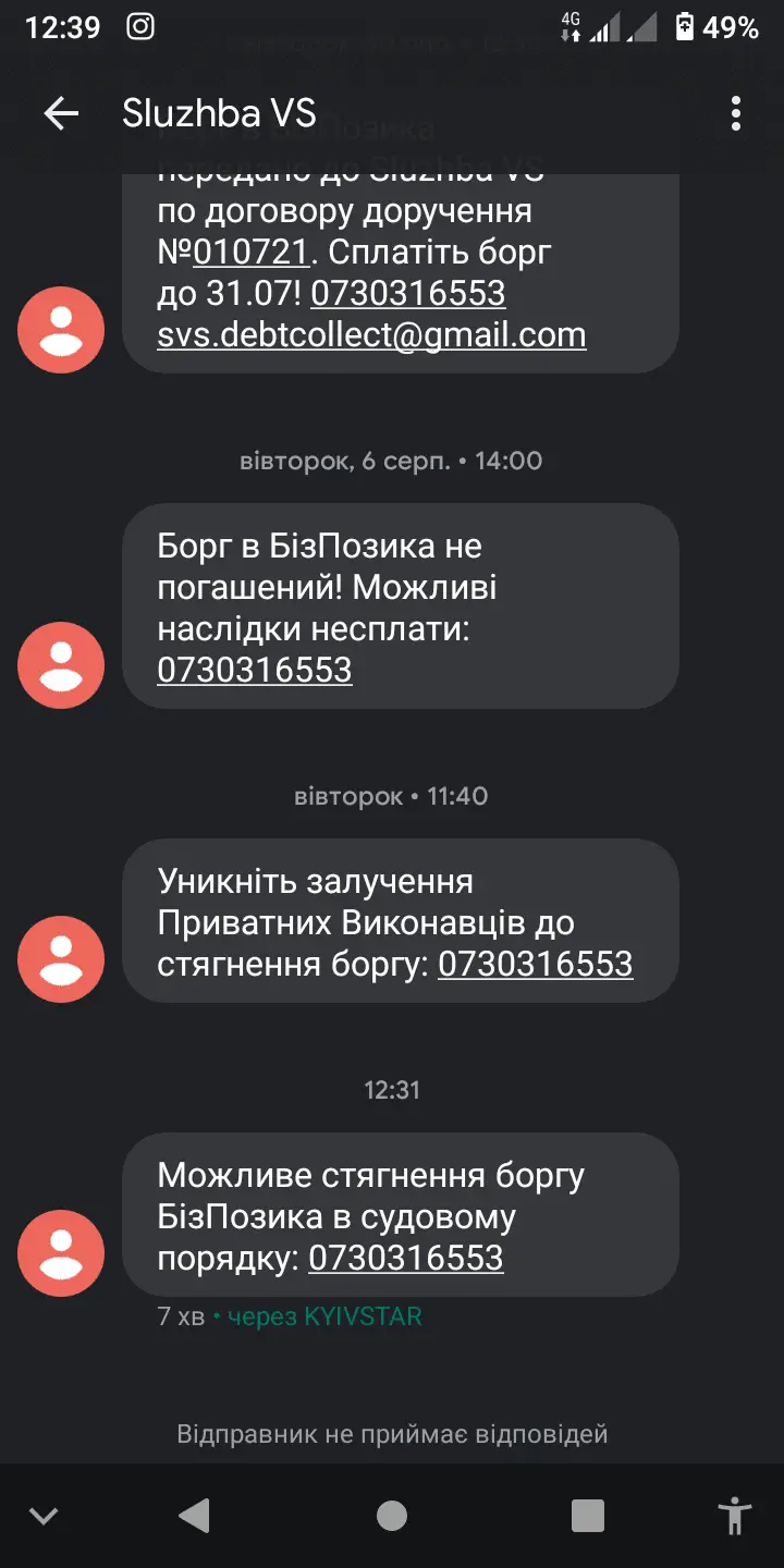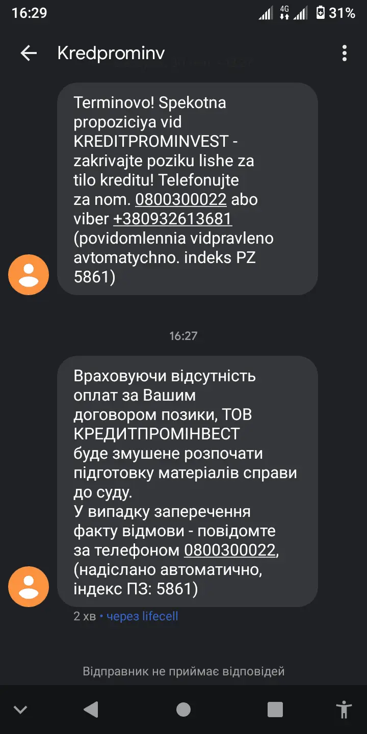 Через пару минут мені приходять смс з різних сайтів що я хочу зарегатся і взяти кредит і мойому брату теж все саме.Через врем'я пише те що взломати тебе.