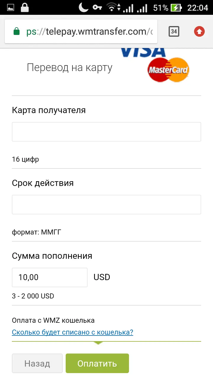 Вам легче через Киви выводить, если меньше 25к рублей за месяц, ибо на конвертации много теряете.Я не прикрепляла карту никакую. Они не дали это сделать, потому, что она не именная. И через обменники тоже не получалось, потому, что вебмани не давал разрешения на платеж. А потом установила приложение вебмани, авторизировалась и начала думать как быть. Мне изначально приходят деньги в рублях. Их вывести нельзя. Я открыла еще один кошелек, долларовый, перевела на него свои рубли. А уже с долларового увидела кнопку ПЕРЕВЕСТИ. Нажала. Выбрала в меню - На банковскую карту. Ввела номер карты и срок действия, сумму перевода, подтвердила через приложение (так бесплатно, за смски они еще 25 центов снимают) и вуаля, через 5 минут деньги на карту зашли. Тогда еще это было так, минут 30 максимум ждала. А с этого лета сделали от 3 до 5 рабочих дней. Но схема не меняется, через 5 дней деньги на карте. Банки Приват и Райфайзен.