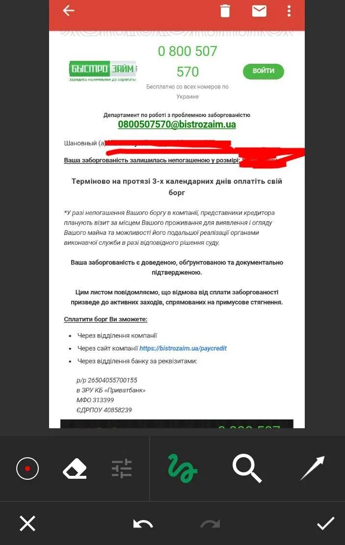 Пришло письмо на электронку, если вкратце, то: "Товариство з обмеженою відповідальністю "ПРОСТІ ЗАЙМИ" готує матеріали справи в органи прокуратури та митну службу України стосовно захисту своїх прав за договором № ........". Поржал. Думаю, зайду ка я в личный кабинет. И тут еще большее веселье) Зашел во вкладку "Займ" и малость прифигел. 50 дней просрочка. А сумма, ей боже