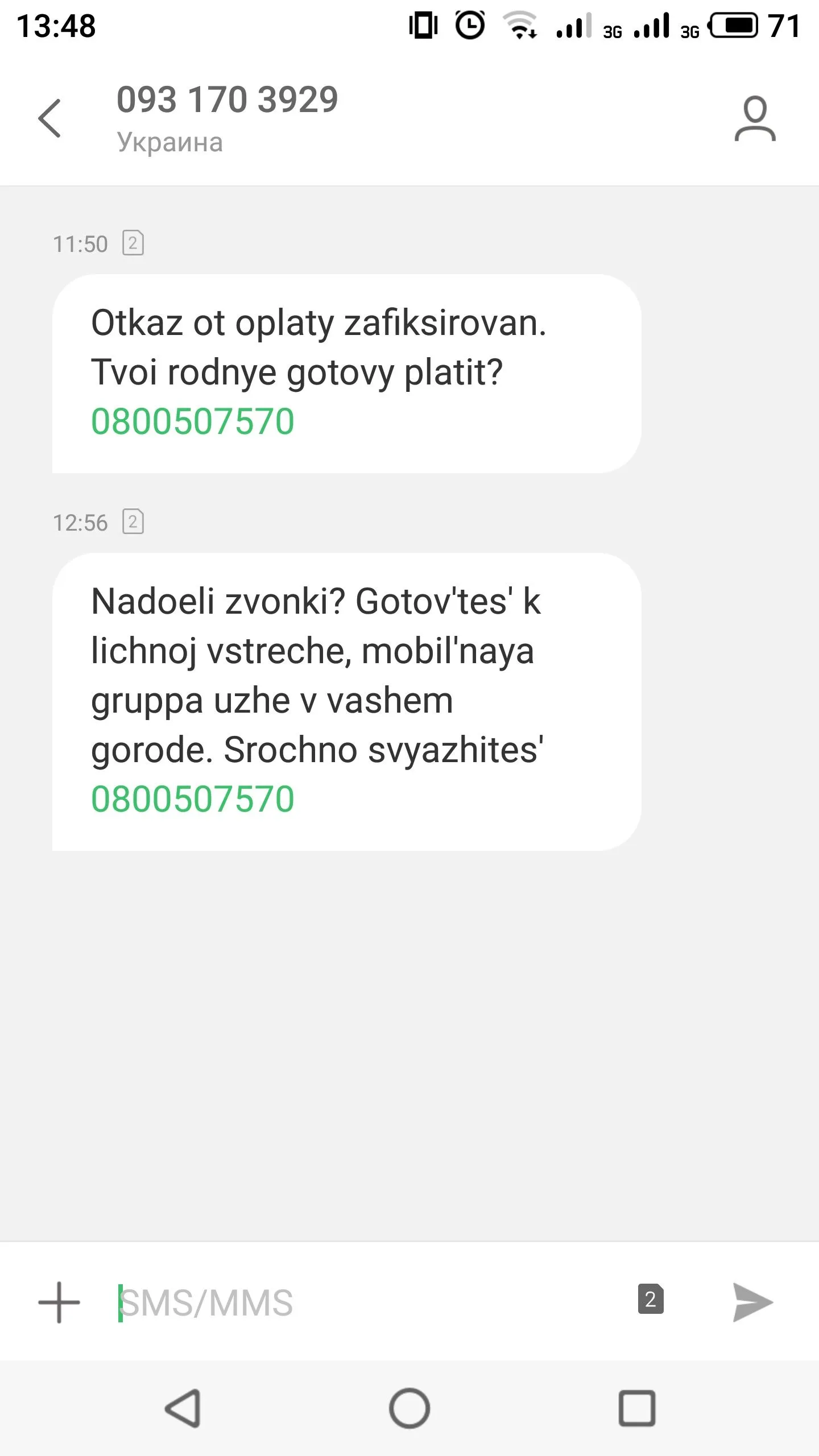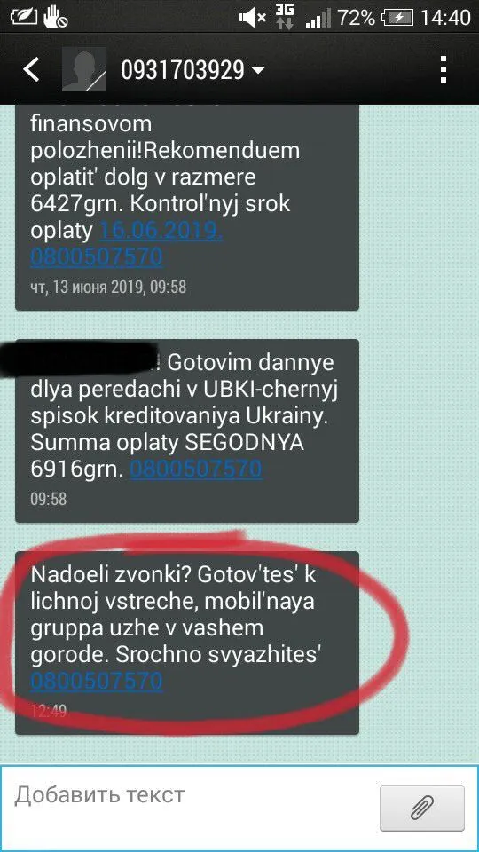 Було щось трохи подібне...але десь тиждень два прострочки, якись пацан сказав щоб до 16.00 оплатила бо будуть родичі оплачувати!!!