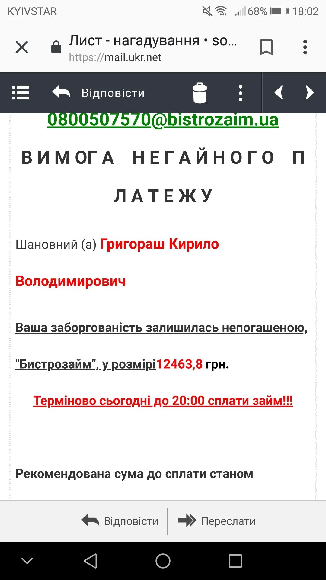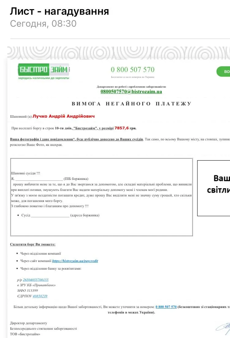 Мне сегодня прислали. Тоже не мои данные. Чет у них там конвеер зла сломался.И мне чужой долг повесили ,правда меньше