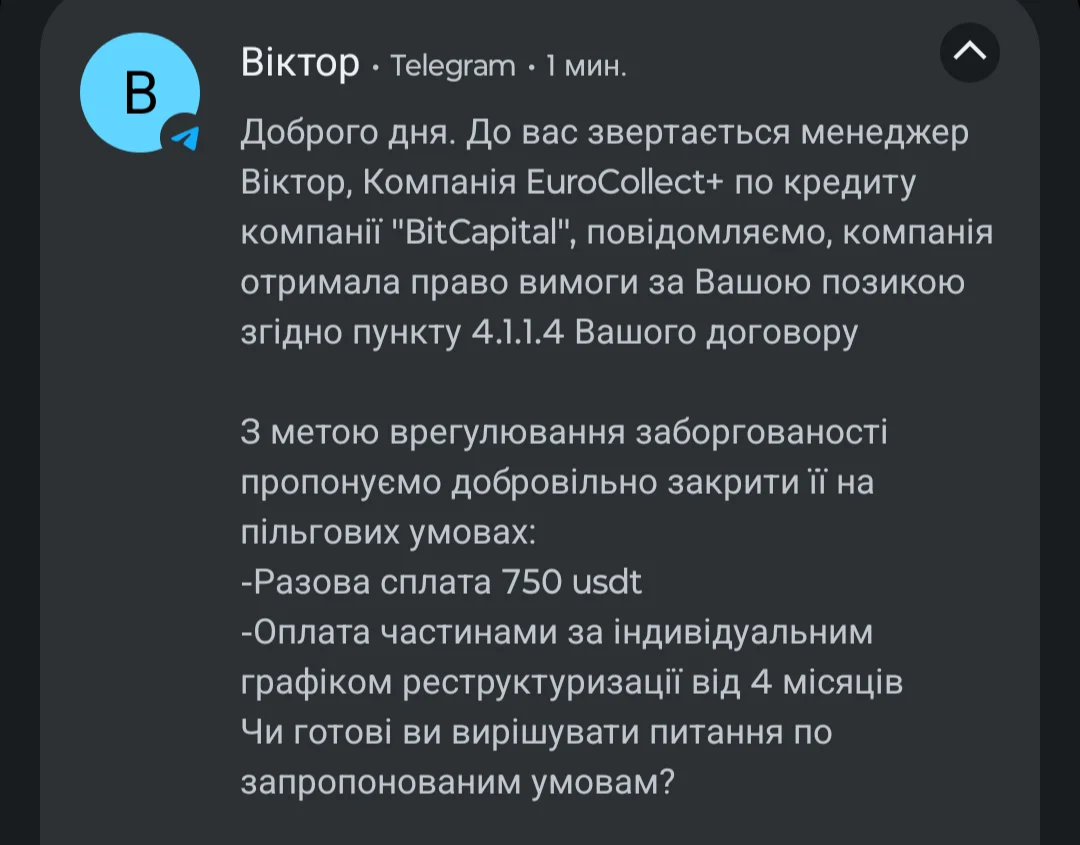 Бит капитал продали коллекторам EuroCollect+?