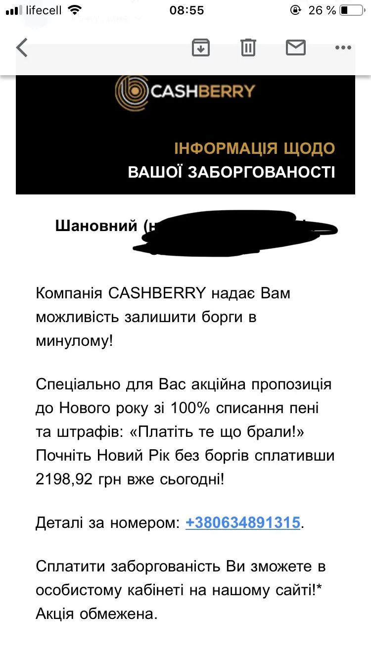 У вас сколько просрочка и сколько тело?Сегодня что ни гляну взеде кешбери активизировались, вот пришло письмо от них, типа требование оплаты, а с другой стороны вот такое творение искусства)))