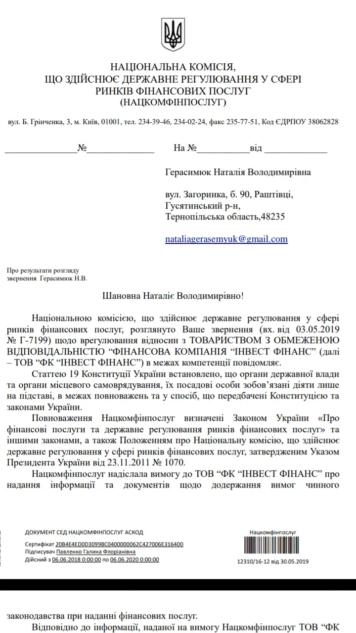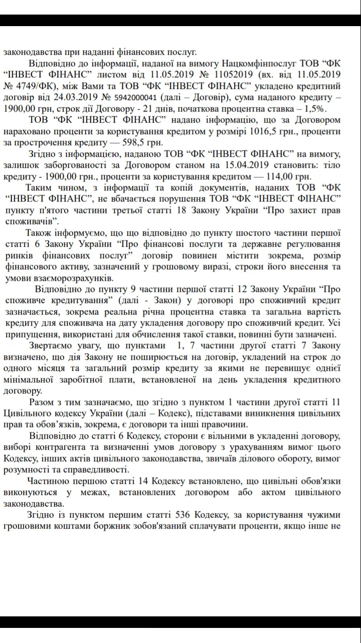 Я зрозуміла що у товариства немає порушень , але вони не сказали що я здійснила платіж 1 500грн.