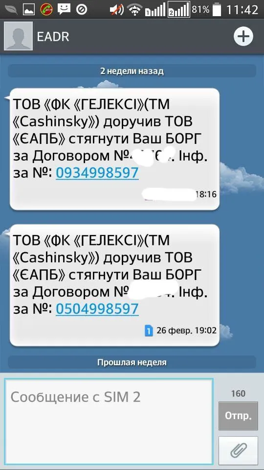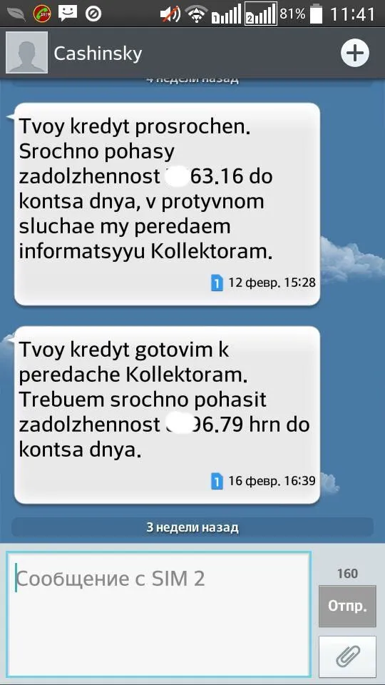 вот хронология моих смс с кашинским , после просрочки и передаче "ЭАПБ" , а дальше тишина с 6 марта