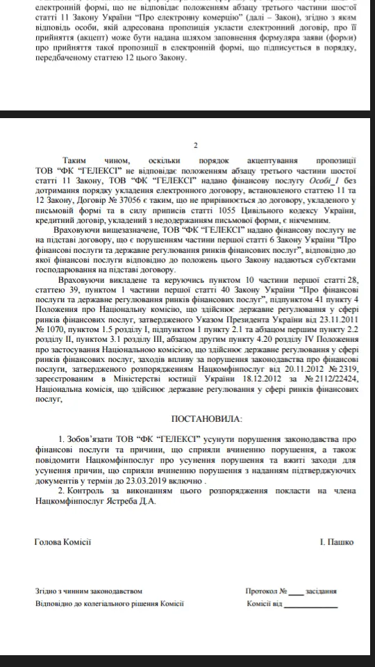 Cashinsky / Нацком признал договор недействительным