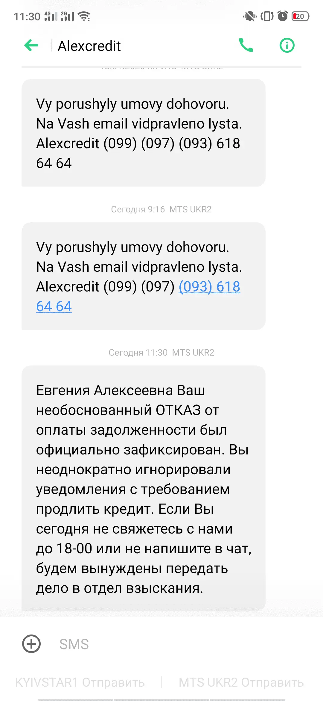 у меня 12 день. пока тихие иногда звонят, пишут смс но они наверное не догнали просто ещё, что пишут Екатерина Леонидович.. Да,да,да не опечатка, Да и папу у меня зовут по другому))))Круто! А когда они такое присылают? А то я только вчера вышла на просрочку. Мне пока только вот что прислали. Я снежинка. Желания брать трубку нет. Вот они и пишут мелким почерком