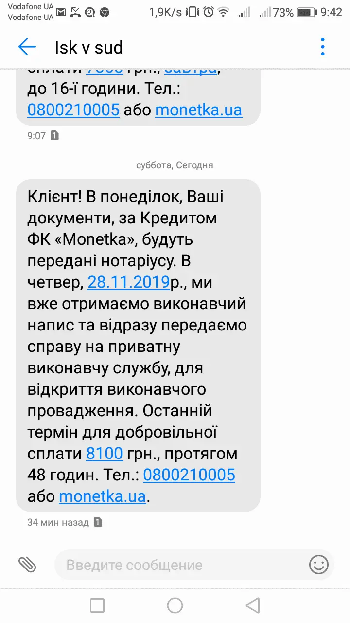 Від себе. Подала позов до суду на них.