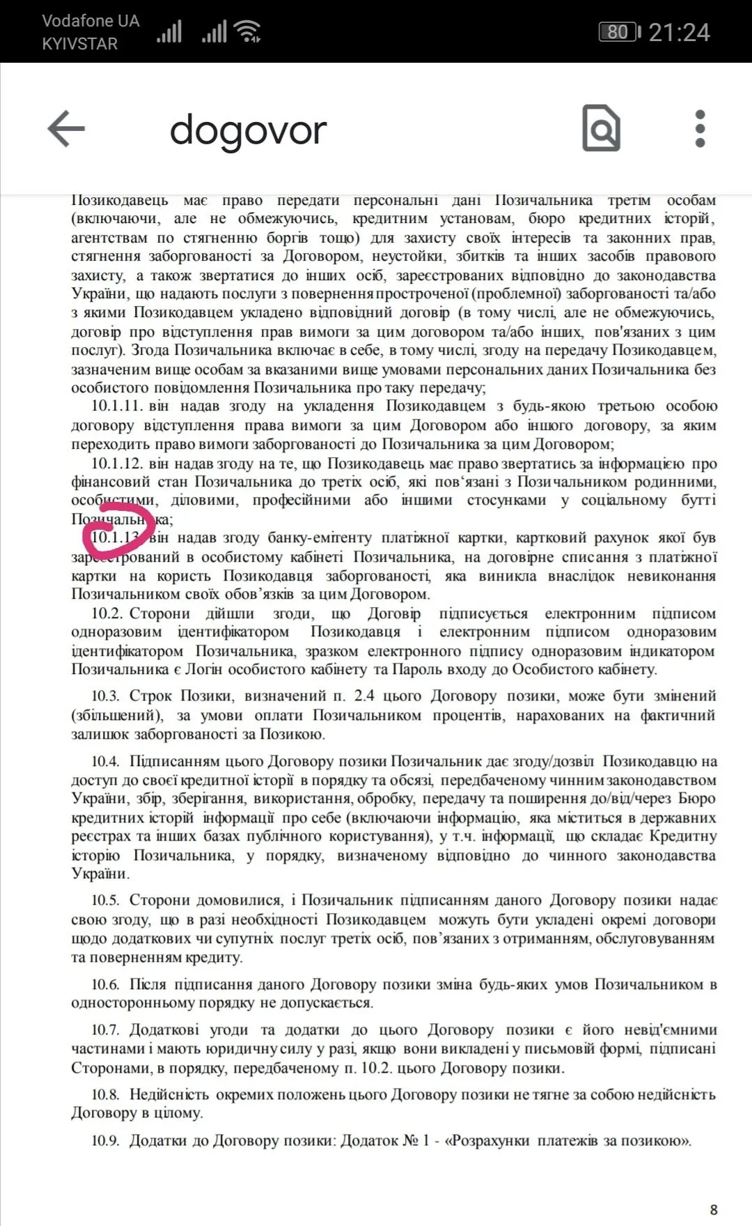 Во, я даже нашла этот договор с пунктиком, какое-то там 1 агентство з надання кредитів Или чет такое, хз кто это у меня такие.