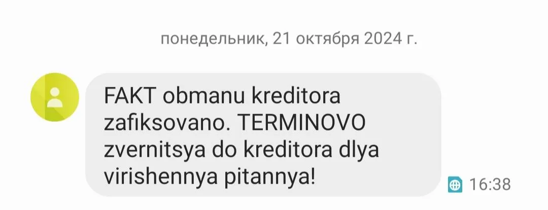 Надходить від Starfiniв смс: "Рішення переглянуто: посилання".