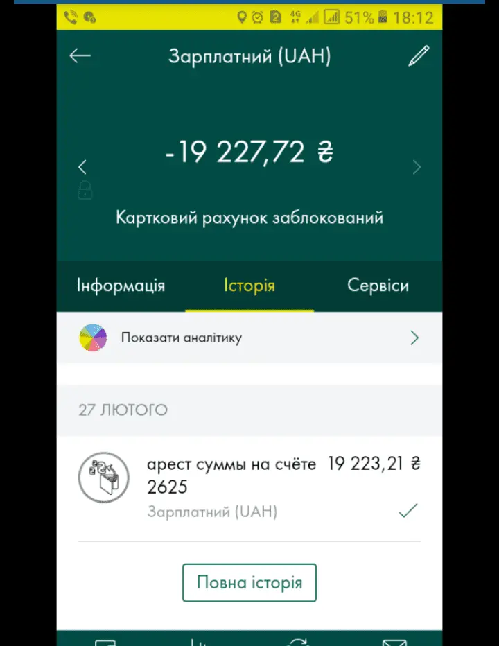 Извините, но вы наверное немного не понимаете о чем я.....Этот счет зарплатный заблокировал Ощадбанк по указанию частного исполнителя который сделал это из-за нотариальной подписи, частного нотариуса. Нарушение закона в этом случае во всем, начиная от того что банк не имеет права от частного исполнителя принимать писульки , заканчивая тем, что зарплатный счет блокировать нельзя ....Но это все произошло и теперь человек должен доказать что это неправильно выкинув кучу бабла
