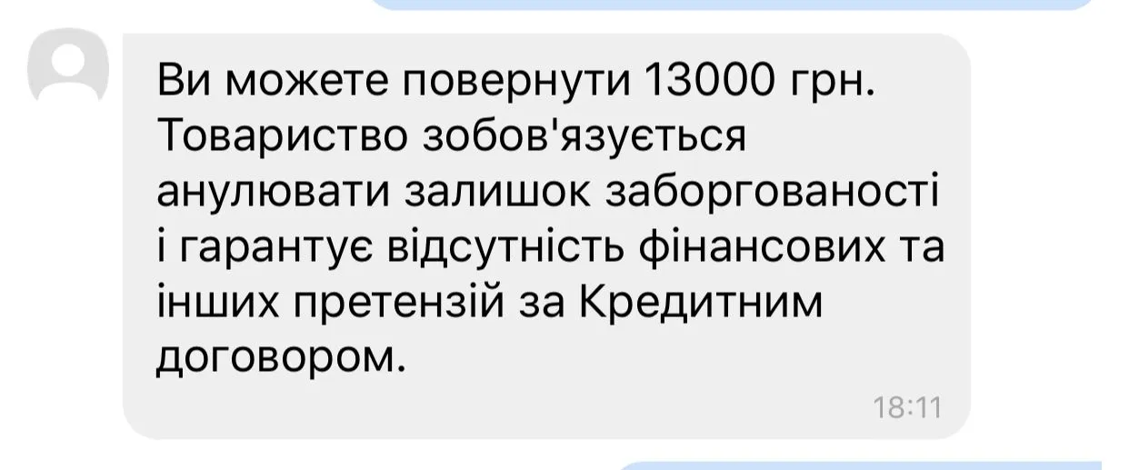 Как-то рано они.У мене тіло 12000 грн уже просрочка місяць набігло 22000грн. Запропонували закрити за тіло. Боюсь, що якщо внесу 12000 почнуть вимагати решту. Що порадите?