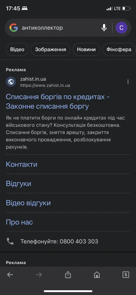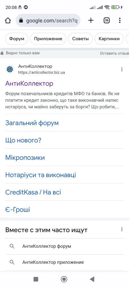 У меня по этому запросу форум первыйВ телефоне когда в Гугле ввожу антиколлектор, то бывает первым идёт юридическая компания всем известная, потом наш форум