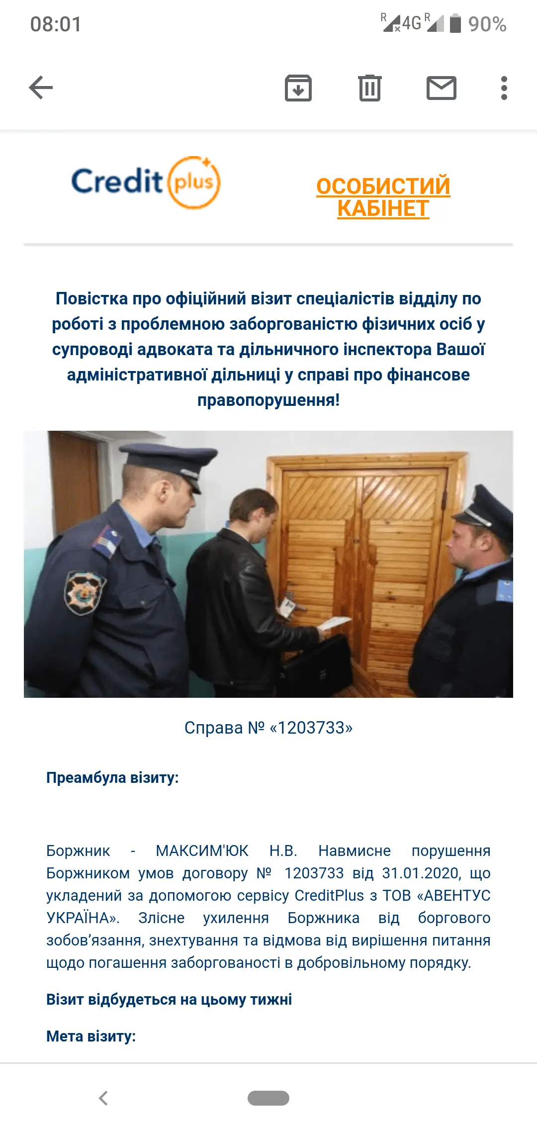 Доброго вечора! Ситуація не з найкращих склалася, надіюся вони просто написали таке повідомлення у вайбері і не зроблять того що хотять. Поясню що трапилося а ви підкажіть будь ласка чи у вас таке було. Написали сьогодні на мій вайбер наступне "Листи сформовані і надіслані за адресою реєстрації з метою повідомити батьків (родичів) першої лінії про ваш фінансовий стан ( загальна непогашена сума 145977грн.) Та дії Компанії відповідно до Закону України про примусове стягнення боргу! Ваше рішення чекаємо до 19:00 у вигляді документу, що підтверджує факт оплати боргу 6895грн." Яке вони взагалі мають право сформовувати листи від імені інших компаній? Я цим особо не переживаю але через їхній натиск в мене вже захворіли пристарілі дідусь і бабуся бо надзвонюють на стаціонарний а ще зараз як побачать загальну суму то взагалі незнаю чого і чекати, перехопити листи також не можу бо виїхав за кордон, що робити немаю жодного поняття, підкажіть будь ласка чи вони взагалі таке зроблять чи тільки залякують???