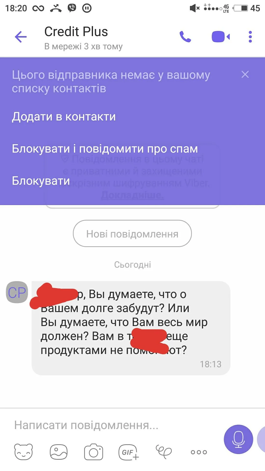 Оооо они меня вот тероризируют эту неделю. На звонках блок. Достают в вайбере. Блокирую, так с нового номера снова достают. Создают группу с номерами моего начальства и окружения и пишут туда, что бы мол на меня повлияли. Сразу оттуда удаляюсь, игнорирую их. Пишут лично в вайбер унижают, оскорбляют, не реагирую ваще.