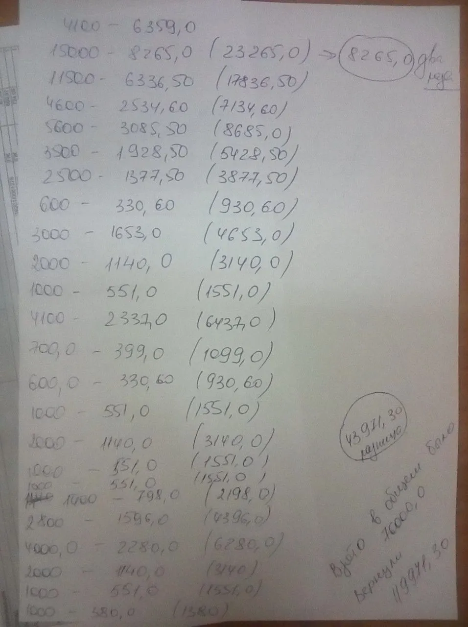 я ниже скинула фото от руки написала сколько брала и сколько отдавала с процентами