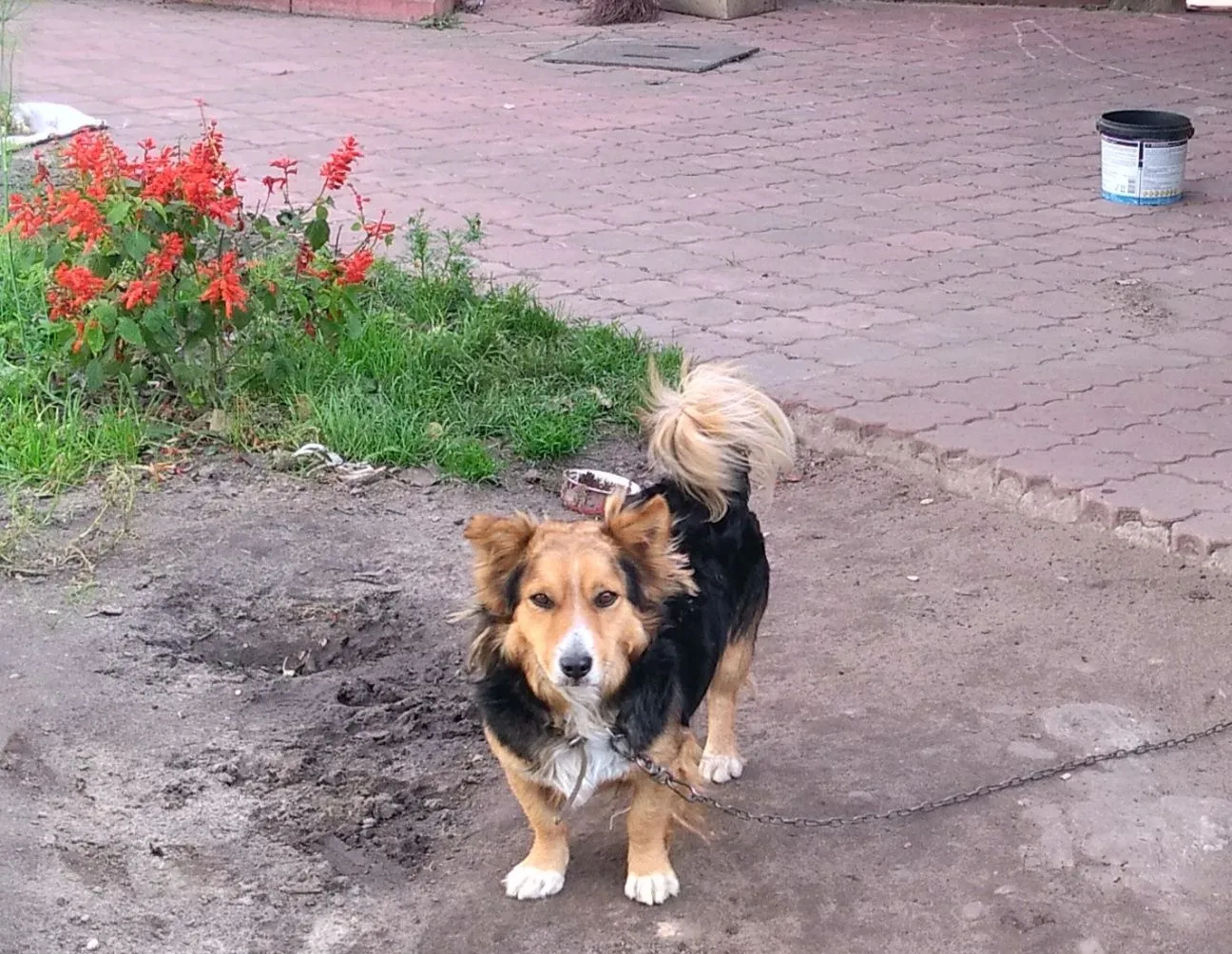Это же любимчики домашние,зачем их пинать?пнули бы пару раз и поза бы у пса поменялась....