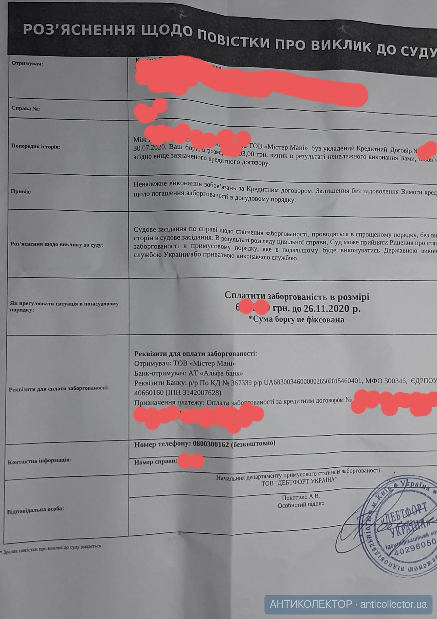 мені на електронну пошту писало Дебфорт...мол, ми вам пропонуємо реструктуризацію по Дінеро, розбиваємо суму на 3 частини. Але, не довго писали...і вже слились