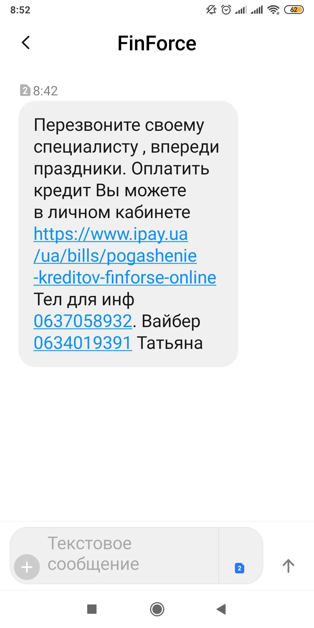 Сегодня пришло вот такое смс от Фин форс