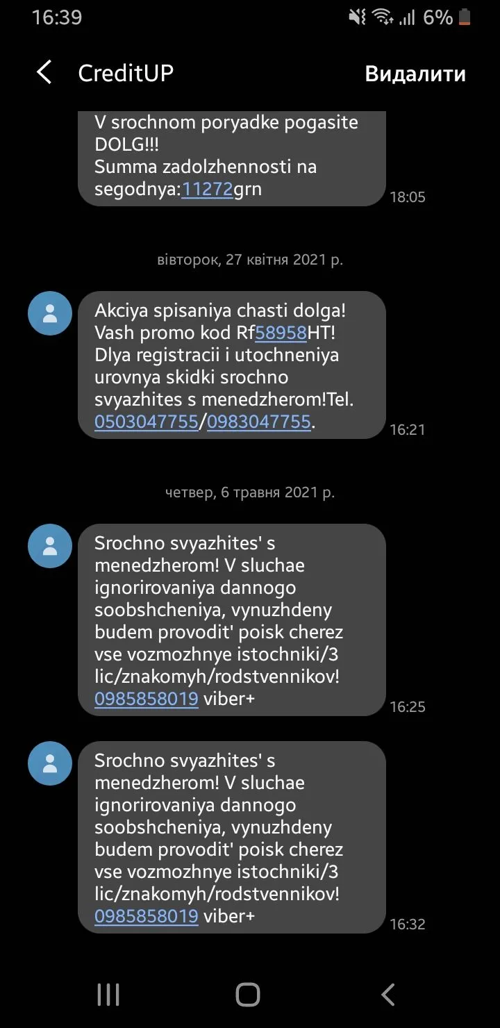Скільки у вас прострочка?Мне прислали в Вайбере номера телефонов родителей и реальный список соседней. Вот теперь думаю, будет ли звонить?