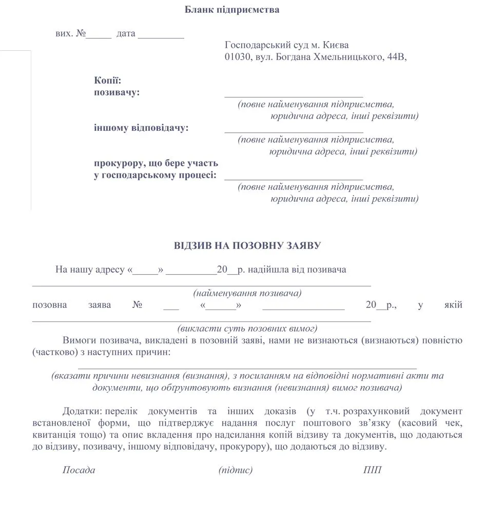 Абдейт. Первое вложение уже не работает, в старом гражданском кодексе было заперечення. В новом відзив. Тоесть необходимо поменять эти два названия, а текст оставить