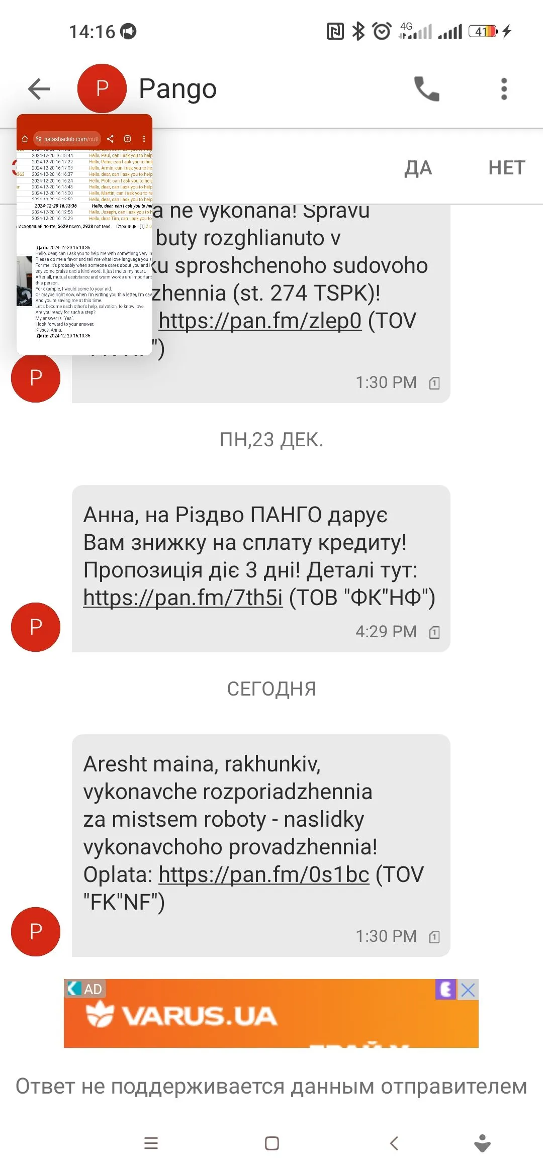 І прийшло повідомлення від Панго про арешт рахунків. Підкажіть, будь ласка, це звичайна лякалка?